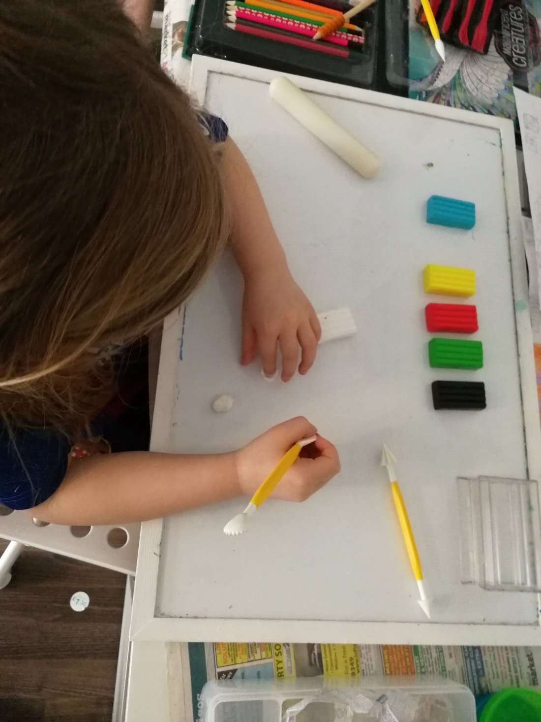 After the college class we met some friends to do a creative story session. X enjoyed drawing his characters while A enjoyed making her characters from clay.